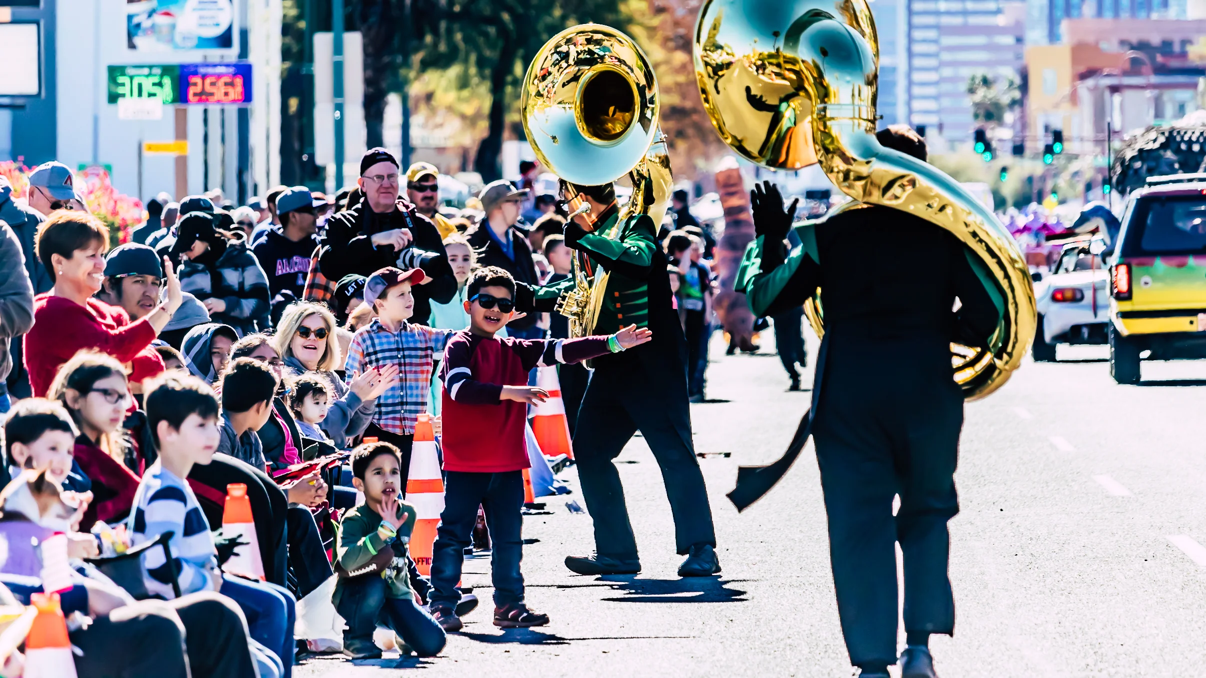 The Coyote Pride Marching Band ended the year on a positive note after delivering a marquee performance during the two-mile march at the 40th Annual Fiesta Bowl Parade in central Phoenix. The band entertained thousands of live spectators who watched in awe as the band played upbeat melodies, including the popular song “Sweet Caroline.” The band also captured the attention of thousands of viewers who tuned in to watch the television broadcasts.